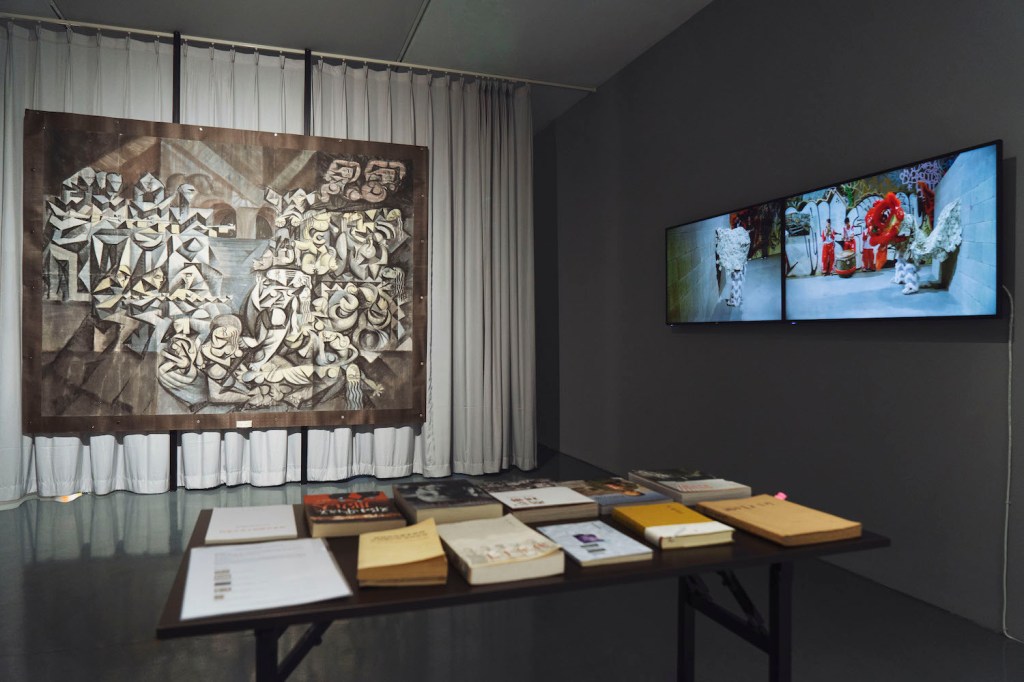 整个展览的阅读基础几乎都在围绕近四十年的历史片段不断盘旋与交错,值得一提的是,文献在展览中的选择与使用强烈地激发了人们对历史的好奇心与迷恋,或者说,就连文献自身也被激活了某种意外的潜能——这些现场中的文献远远不止是一条看似合理、不可回避、甚至言之凿凿的回顾道路时“应有”的史料。挑动人们感官的,更多是来自于那些隐约合理又模棱两可的材料,被重新启用后所完成的拓扑部分,其拓扑的不只是历史叙述,还有展览结构和与之关联的作品语境也都一并被改变了。甚至不加回避地说,在一个“艺术展览”中的阅读惊喜已不只是来自于艺术作品本身,而正是上述所强调的文献与作品之间的对话潜能,也即是前文中不断提及的这个临时搭建的“语境”,是作品与文献之间的夹缝、是艺术与政治之间的夹缝,合理又意外地指引着、铺垫着阅读的路径。